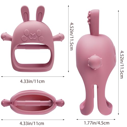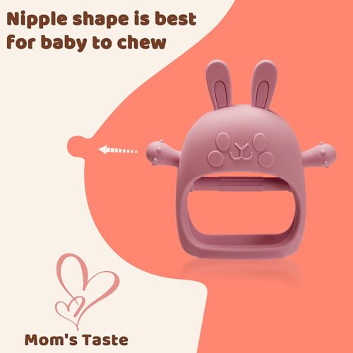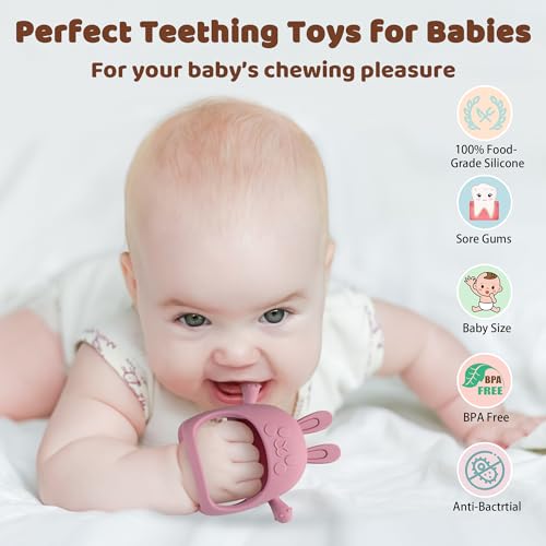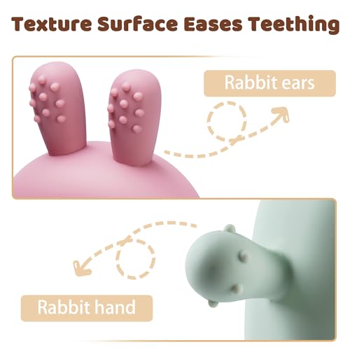 2 Packs Bunny Teething Toys for Babies 0-6 Months,Never Drop Teether for 6-12 Months,100% Food-Grade Silicone Teething Mitten for Babies,Teething Relief for Boys Girls,BPA Free