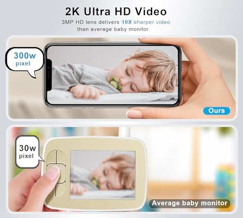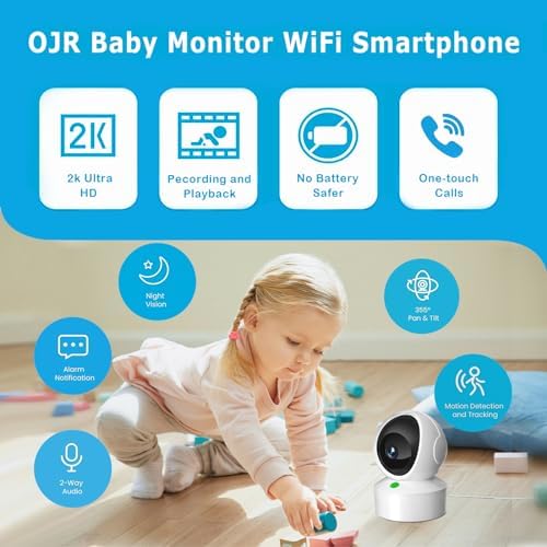 2K HD Video Baby Monitor with Camera and Audio, 2.4G & 5G WiFi Baby Monitor for Smartphone, One-Touch Calls, Night Vision, Motion Detection/Tracking, 2-Way Audio