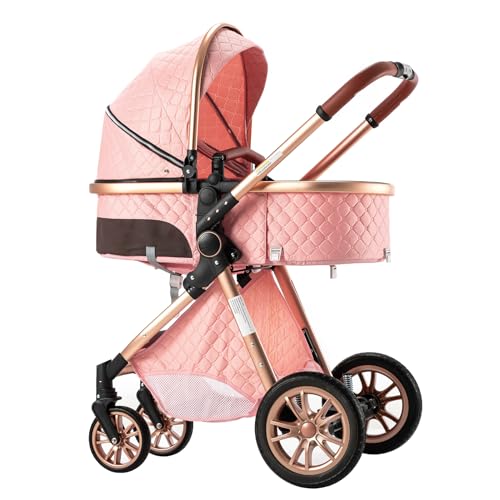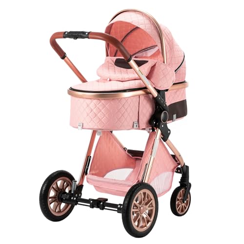 3 in 1 Baby Travel System Baby Stroller Infant Pushchair High Landscape Reversible Foldable Portable Standard Stroller Newborn Pram Buggy Reclining Baby Carriage (UDV9-PINK)