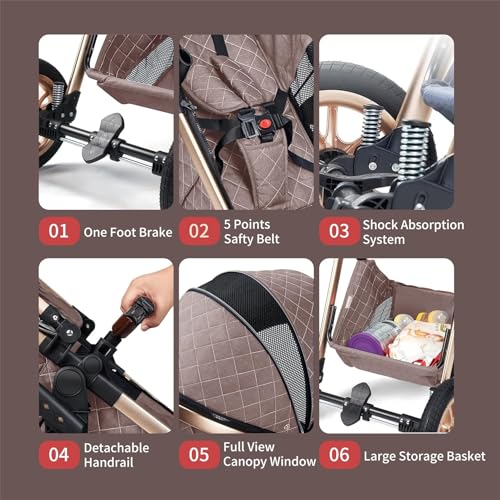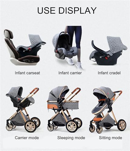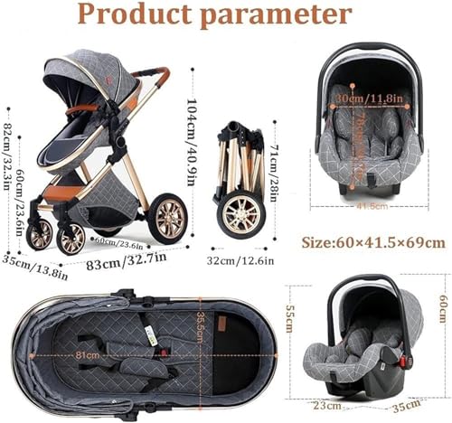 3 in 1 Baby Travel System, Infant Stroller with Car Seat and Base, High Landscape Reversible Foldable Standard Stroller, High Aluminum Frame,Beige