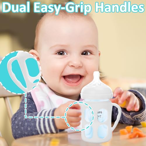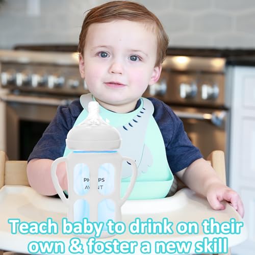 Grows with Baby: As baby’s feeding progresses, introduce grippy silicone handles to help transition from bottle to sippy cup. Silicone handles help teach baby independent drinking skills while using the familiar baby bottle.