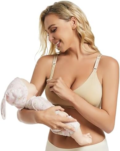 DESIGN BOTH FOR PREGNANT AND NURSING: Our nursing bra features,WIRELESS design makes the bra very soft,the elastic fabric give enough supporting to breast,it will keep the shape after washing, REMOVABLE PADDING,easier to wash the padding,you also can remove it to wear as your habit.ONE-STEP FEEDING CLASP you can take off the cup separately by one step and one hand,the breastfeeding get easier and no awkward.The widen side band will conceal armpit fat,and keep close fit.