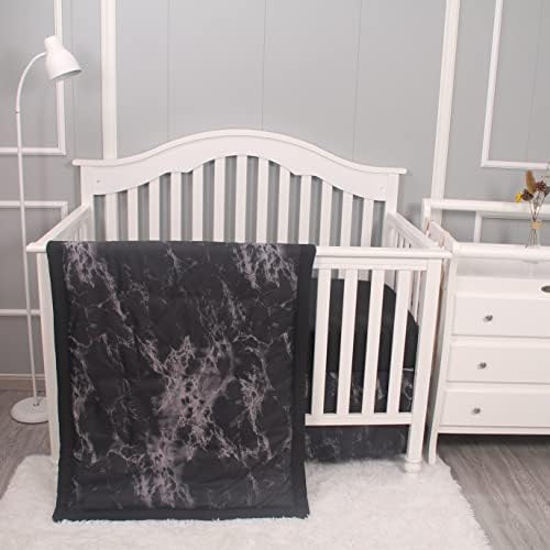 3 Piece Crib Bedding Set for Baby Boys Girls, Classic Nursery Bedding Essential Including Comforter, Crib Sheet and Crib Skirt, Ultra Soft Cozy, Mark Black