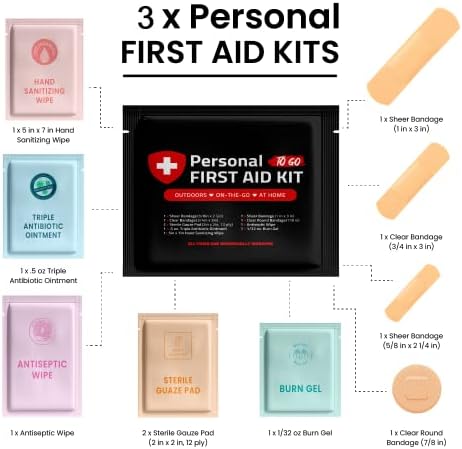 3 x Portable Travel Size First Aid Kit | Perfect for Home, Office, Car, School, Business, Travel, Hiking, Hunting, and Outdoors | Individually Wrapped First Aid Products (Black)