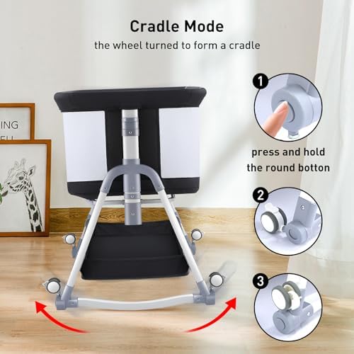 👶【Easy and Simple Assembly】The portable bassinet for baby travel can be assembled quickly within minutes. Tool-free assembly and an easy folding mechanism will making our portable bassinet for baby easy to set up and take down. The universal wheels with brake of the motion bassinet can be turned conveniently from room to room, Or you can choose to lift the gimbal as a rocking bassinet for baby to use.
