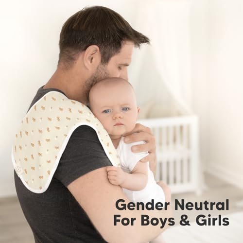 Maximum Shoulder Coverage – Our burping cloths for babies are specially designed in figure-8 to ensure a secure fit, preventing the burp rags from slipping. Measuring 21″ x 10″, this neutral burp cloth provides ample coverage for your shoulders.