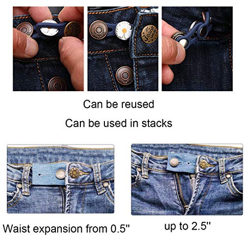 EASY TO USE :Pants extender button no need sew, Disassemble and reusable button extender freely. These waistband extenders can add ½ to 2 inches of extra waistband space within seconds. You can easily adjust the size to fit a wide variety of pants.