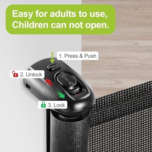 70 Inches Extra Wide Retractable Baby Gate – Indoor/Outdoor, for Doorways and Stairs – Perfect for Kids, Pets, and Large Dogs Gate for Stairs.-Black