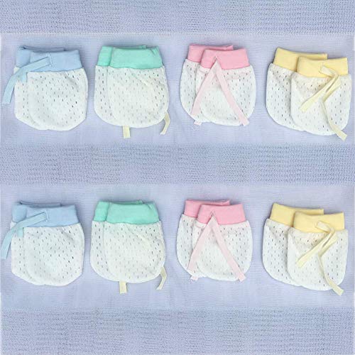 Package included: 8 Pairs baby mittens(2 pair of each color ) 4 different color, Let baby have enough gloves to replace.