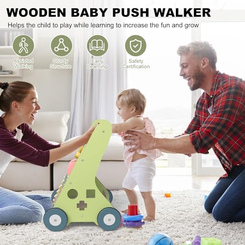 Amazingjoy Wooden Baby Walker Wheels,Baby Push Walker for Babies 6-12 Months Montessori,Toddler Walker Push Toy Wooden Activity Walker for Baby Boy,Walking Toys for 1 Year Old Learning to Walk Girl