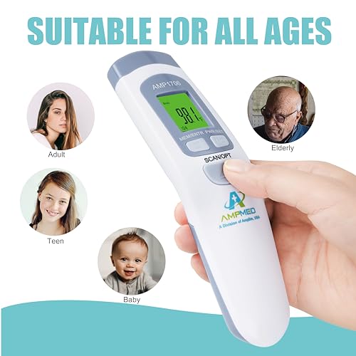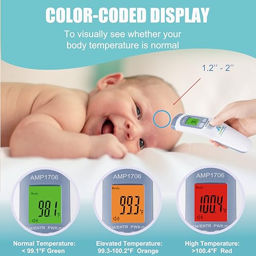 Amplim Forehead Thermometer for Adults, Kids, and Infants: No-Touch Digital Baby Thermometer, Temporal Touchless Medical Grade Newborn Thermometer, Registry Must Have for Body Fever Temperatures