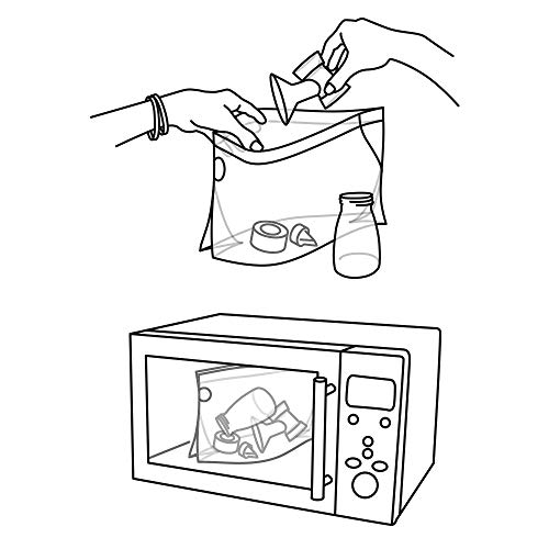 Multi-use large bags for microwave, intended for bottles and breast pump accessories that can be steam-cleaned; each bag may be used 20 times