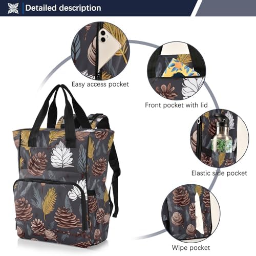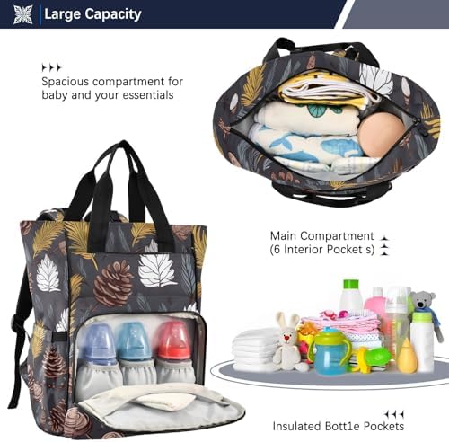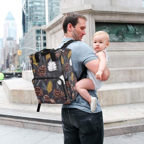 Autumn Pine Tree Diaper Bag Backpack for Baby Boys Girls Multifunction Travel Tote with Stroller Straps & Bottle Storage Nappy Changing Bag for Traveling Shopping Hiking Moms Dads Baby Shower Gifts