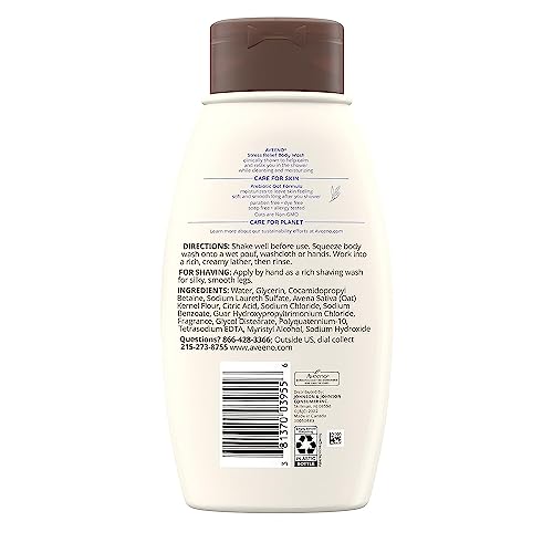 Relax while you cleanse your skin with Aveeno Stress Relief Body Wash with prebiotic oat & a calming lavender scent. Clinically shown to help calm & relax you in the shower, the allergy tested oat body wash gently cleanses to remove dirt, oil & impurities while preserving skin’s natural moisture barrier. The lavender fragrance of this cleanser is designed to be gentle on skin & 97% of users agreed the relaxing body wash gently cleansed their skin & rinsed away clean without over-drying. Daily cleansing wash can also be applied by hand as a shaving gel for silky legs. From a dermatologist-recommended brand for over 70 years, this lavender scented body wash for sensitive skin is free of sulfates, parabens, dyes & soap. Shake before use, & squeeze onto a wet pouf, washcloth, or hands. Work into a rich, creamy lather & rinse. Stress Relief Body Wash packaged in a bottle containing 30% Post-Consumer Recycled Plastic. Follow with Aveeno Stress Relief Lotion to lock in moisture for 24 hours.