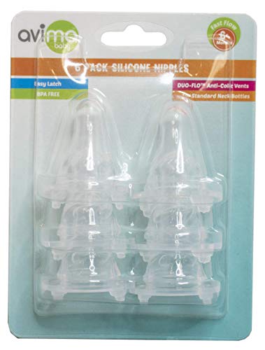 Avima Baby Silicone Nipples for Standard Neck Bottles, Fast Flow 6 Months+ (Set of 6)