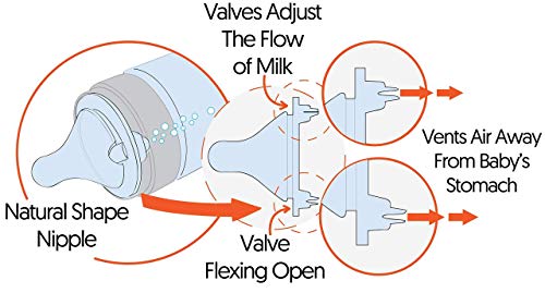 Patented Duo-Flo nipple adjusts the flow of milk according to your baby’s feeding pace to help reduce colic, gas, and spit up.