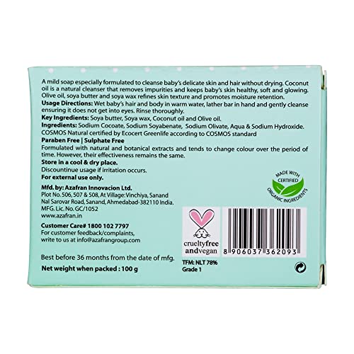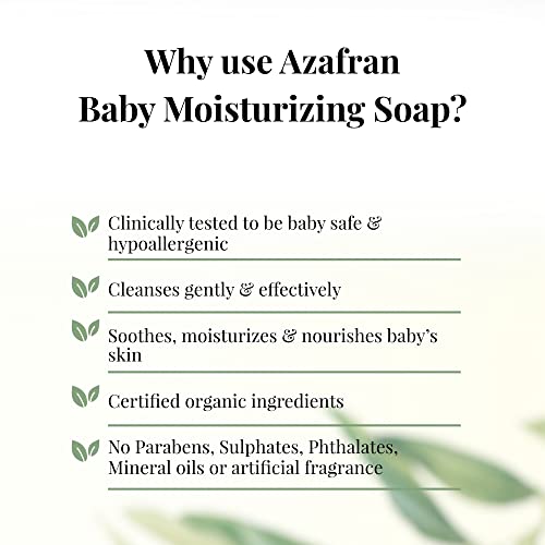 Azafran Organics Baby Soap Bar, 3.52 Ounce Mild Bar, Made with Natural Olive and Oil Coconut Oil, Moisturizing Baby’s Sensitive Skin-Hair, Contain No Synthetic Chemicals