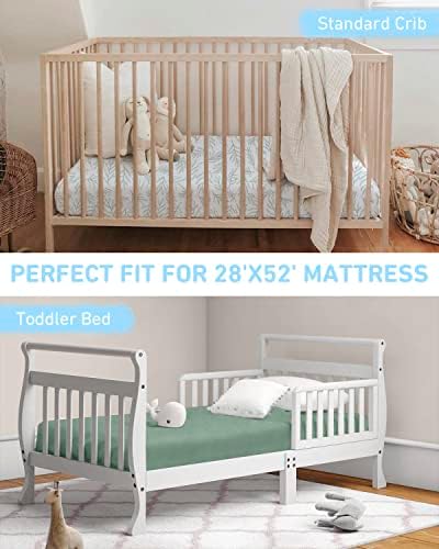 Babebay Crib Sheets for Boys and Girls, Fitted Baby Crib Sheet Neutral for Standard Crib Mattress & Toddler Bed Mattress (52″x28″), Soft and Safe Cotton Green Crib Sheets, 2 Pack (Sage Green)
