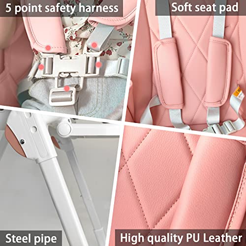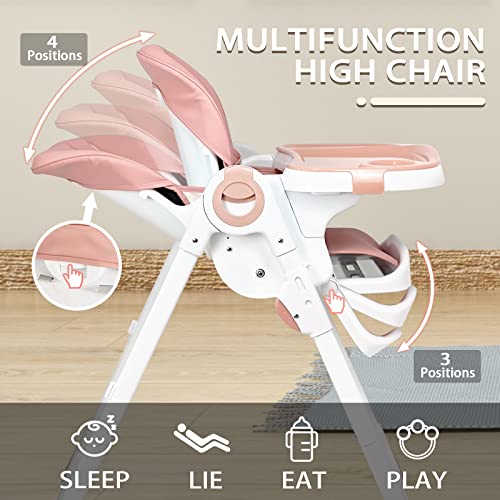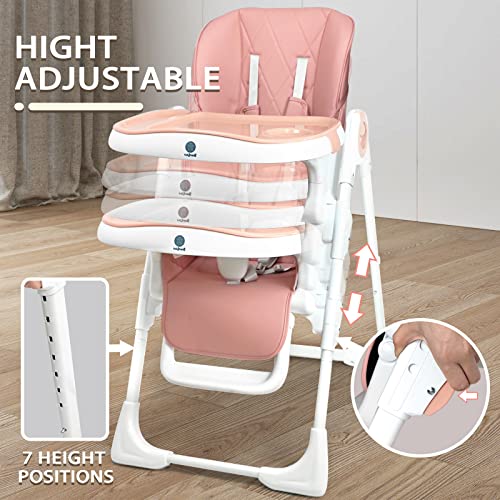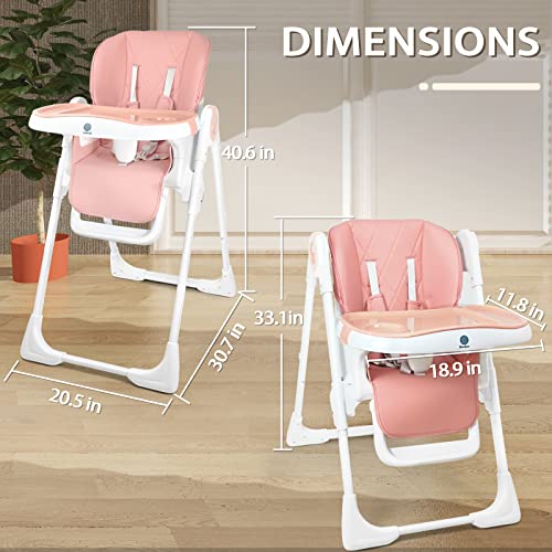 Babilous 4 in 1 Baby High Chair Foldable Booster Seats, Portable and Compact Adjustable High Babychair for Babies and Toddlers – Multiple Heights and Positions for Christmas and New Year Gifts (Pink).