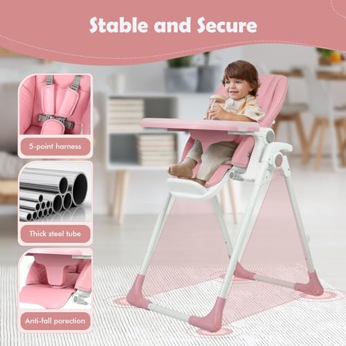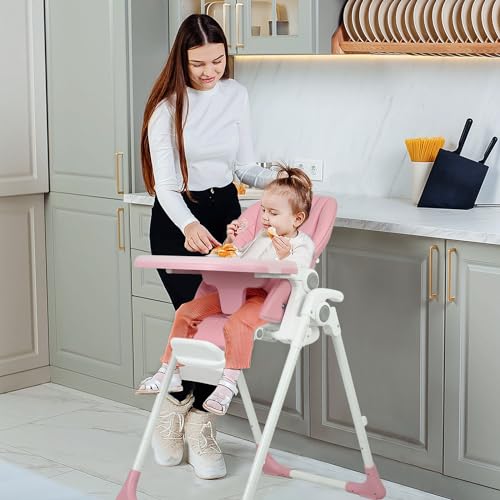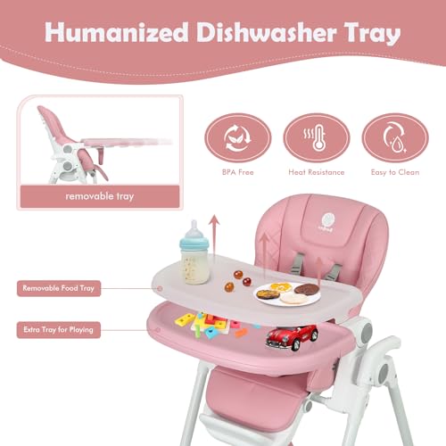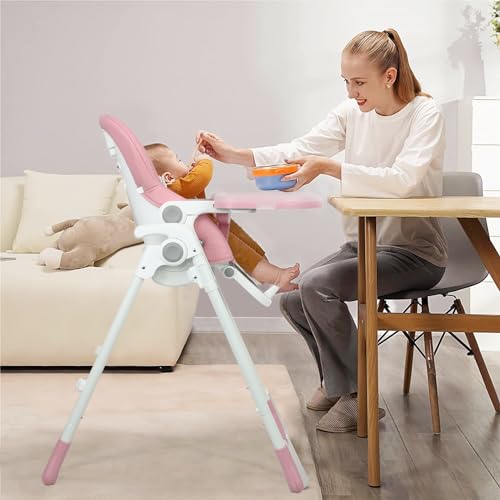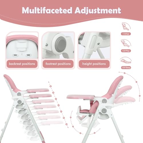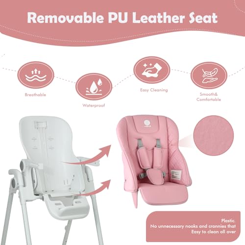 Babilous 4 in 1 Baby High Chair & Portable High Chair and Compact Adjustable Backrest Footrest Seat Height High Chairs for Babies and Toddlers with Detachable PU Leather Cushion (Pink)