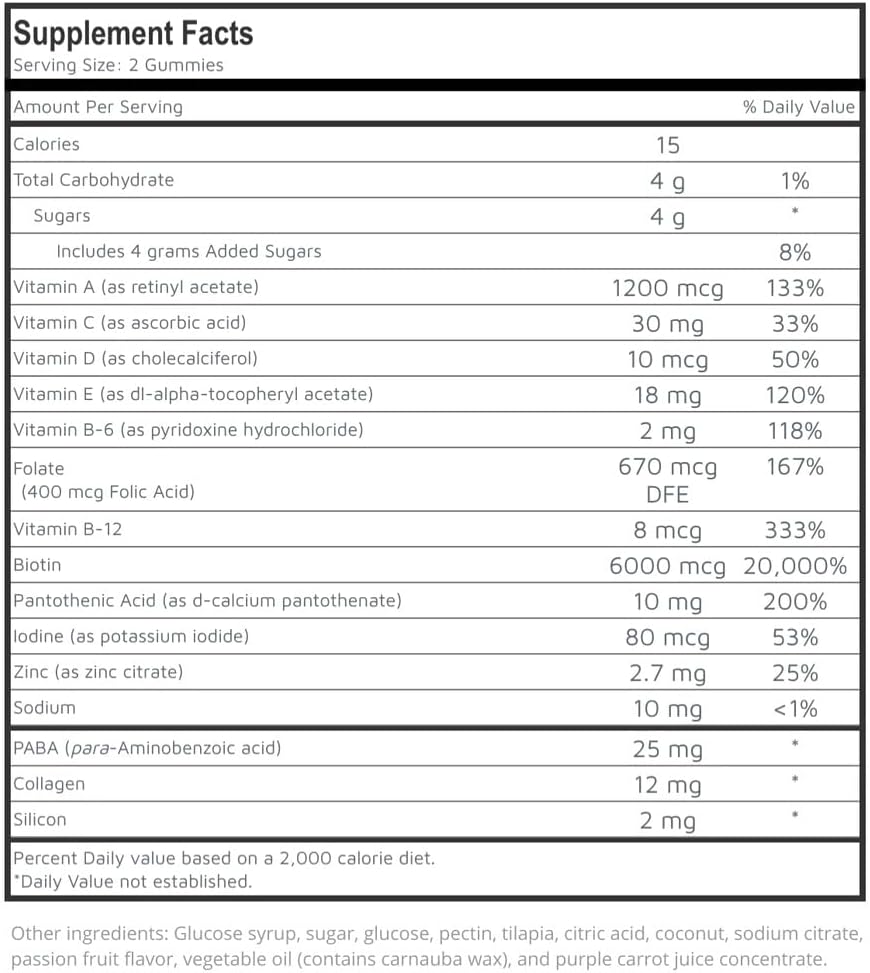 BABY BLUES HAIR VITAMINS: As hormones and estrogen levels drop postpartum, your hair might shed like a molting rabbit’s fur; Our Maximum Strength Hair Vitamins helps trim the period of hair loss and encourage growth; Lilikoi/Passionfruit Flavored