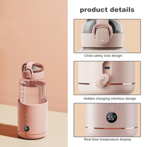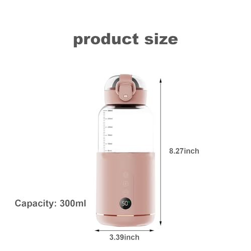 Baby Bottle Warmer, Bottle Warmer 300 ML Portable Water Warmer for Baby Fomula Precise Temperature Control USB Rechargebale Milk Warmer for Car Travel