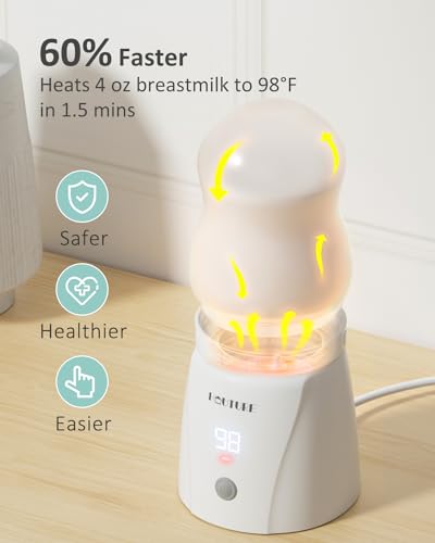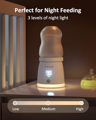 【Easy to Use】Simply twist your bottle into the device after connecting it using the provided adapter, then press the power button. In minutes, you’ll have warm milk ready for your baby, ensuring a hassle-free experience. Plus, a night light with three brightness levels is perfect for nighttime feedings. Cleanup is a breeze: just rinse and wipe.