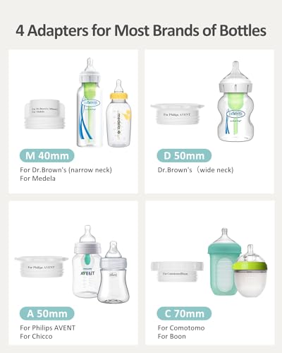 【Fits Most Bottles and Dual Leak-Proof Design】Includes 4 adapters that are compatible with Dr. Brown’s 50mm, Dr. Brown’s & Medela 40mm, Philips AVENT & Chicco 50mm, and Comotomo & Boon 70mm. The adapter comes with leak-proof silicone O-rings, it prevents leakage, ensuring a reliable and mess-free feeding solution for parents.