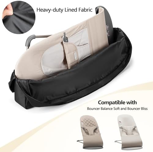 Baby Bouncer Transport Bag, Bouncer Carrier Compatible with Baby Bjorn Bouncer Balance Soft and Bouncer Bliss, Double Zipped Travel bag with shoulder pad, Black