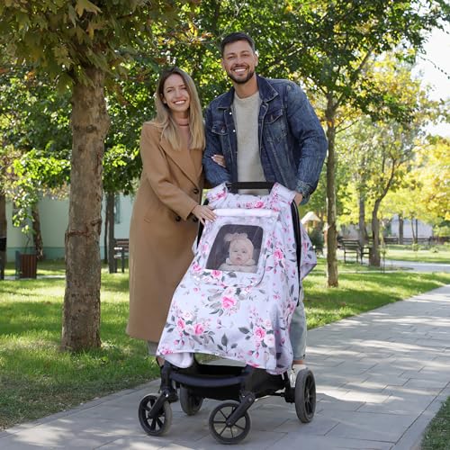 Baby Car Seat Covers, Car Seat Covers for Babies, Kick-Proof Car Seat Covers for Infant Car Seat with 3 Layers Breathable Mesh Peep Windows, Windproof Car Seat Canopy Newborn Gift for 4 Seasons