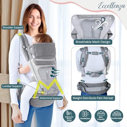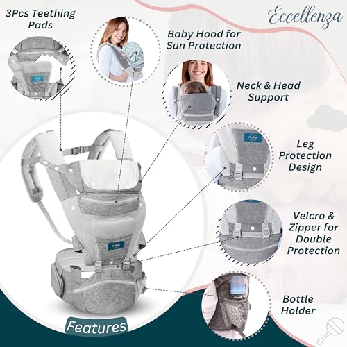 Baby Carrier Newborn to Toddler with Hip Seat | 6 in 1 Baby Carrier for Dad & Mom | Toddler Carrier with Head Support | Adjustable Straps, Sunshade Cover & 3 Teething Pads (06-45 lbs)