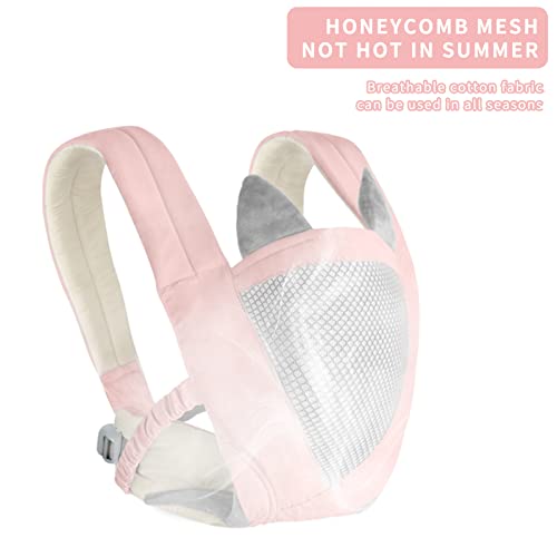Baby Carrier, Shoulder Strap Grid Breathable Infant Sling Butterfly Buckle Stretchy Adjustable Front Facing, All Position Backpack for 3-36 Month Baby to Toddler Girl and Boy 7-40 lbs (Pink)