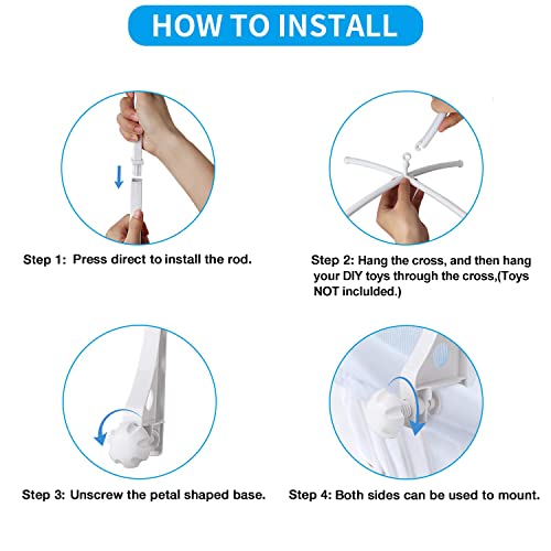 Easy to install – just clamp and play. buying your own favorate hanging toys. the baby mobile holder include arm, hanging cross, wind-up music box, but without dolls. suitable for crib, infant bed, strollers, bassinets, car Seats, carry cots etc.