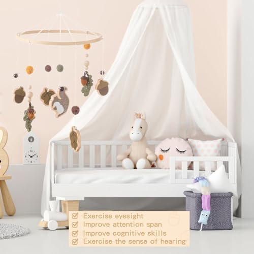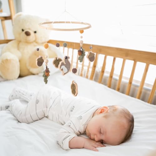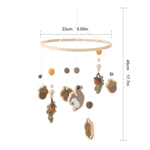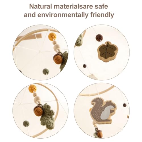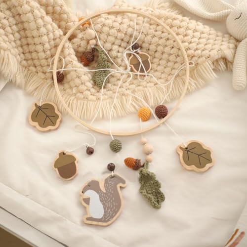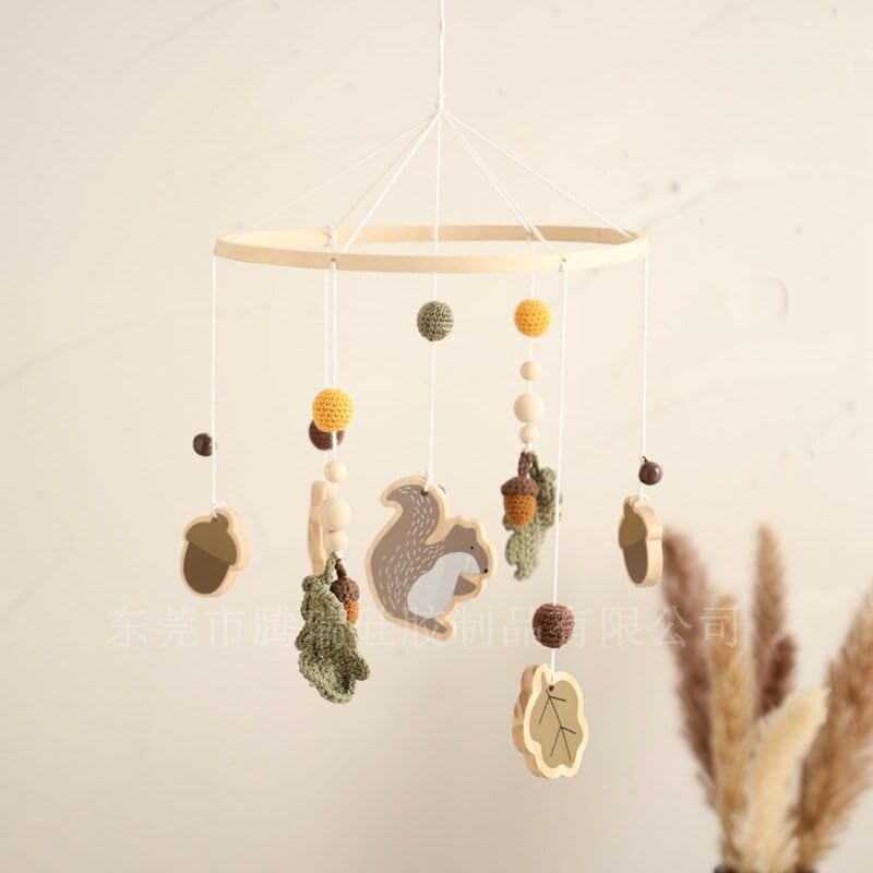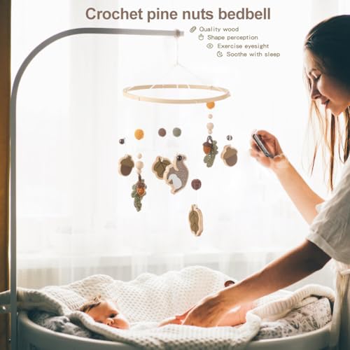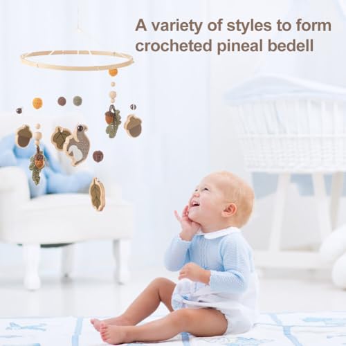Baby Crib Mobile for Boys Girls, Wooden Nursery Mobile, Gender Neutral Hand-Crocheted Mobile, Ceiling Mobile – Pine Nuts, Squirrels, Fallen LeavesSpecifications: