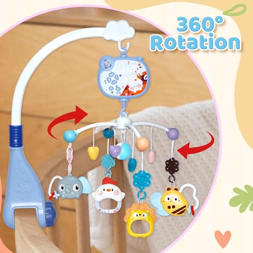 【Rotate】360° rotating hanging rattles with music is easier to attract the baby’s attention. It is a very good gift for newborn 0, 3, 6, 12 months.