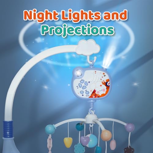 Baby Crib Mobile with Music and Night Lights,Mobile for Crib with Rotation, Remote Control, Projection, Baby Crib Toys for Newborn Infant Boys Girls Toddles (Pink)