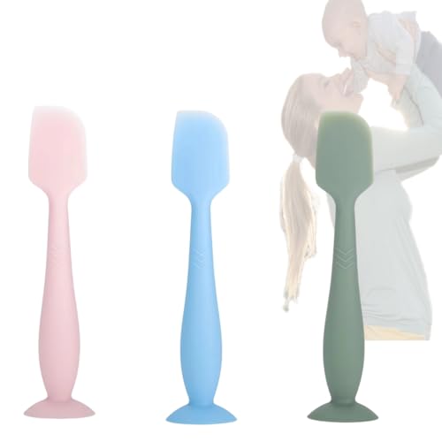 Baby Diaper Cream Spatula Applicator 3 Pack Soft Silicone Butt paste Applicator Diaper Cream Brush with Suction Cup Base (blue, Pink, Green)