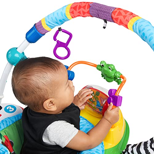 The Baby Einstein Neighborhood Friends Activity Jumper will captivate your baby like no other activity jumper can. With 360 degrees of multi-sensory activities, your baby can swivel and play every which way. The activity center features 3 play stations and more than 12 activities to explore. The light-up piano lets your baby compose their first musical masterpiece, while the spinning frog bead chaser encourages hand-eye coordination. With extra link loops, you can add your baby’s favorite toys or swap out new playful friends so entertainment is always in reach. The baby bounce chair allows your little one to jump and dance, which helps strengthen their developing leg muscles. With no doorways required, you can watch your baby safely play and grow wherever you need to be. From music appreciation to language introduction, this award-winning Baby Einstein jumper turns the idea of a baby bouncer into an imaginative world of discovery.