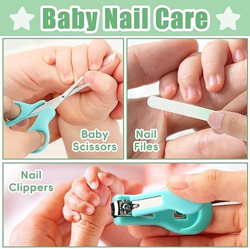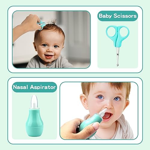 Baby Grooming Kit, Infant Safety Care Set with Hair Brush Comb Nail Clipper Nasal Aspirator,Baby Essentials Kit for Newborn Girls Boys (19 Pc Green Kit)