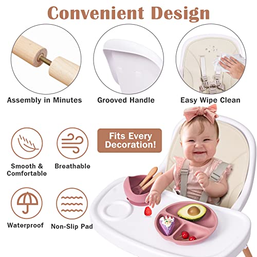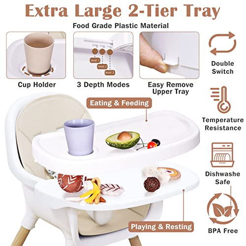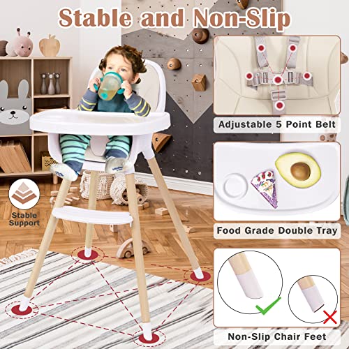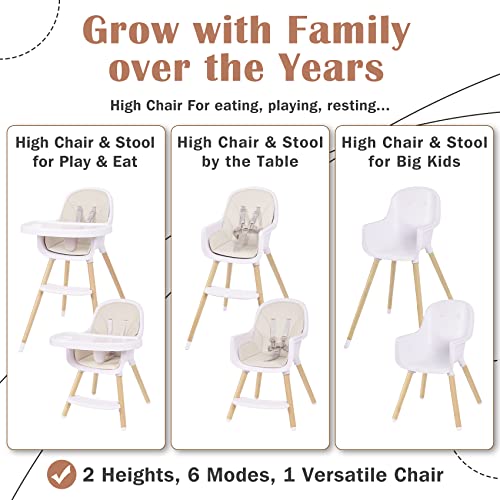 Baby High Chair, 3-in-1 Convertible Wooden High Chair with Adjustable Legs & Double Dishwasher Safe Tray, High Chairs for Babies and Toddlers, Made of Sleek Hardwood & Premium Leatherette
