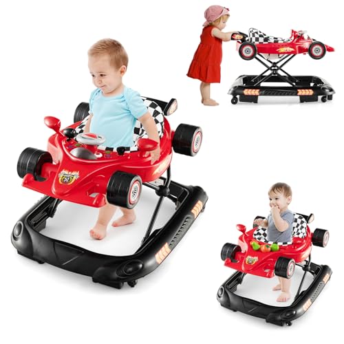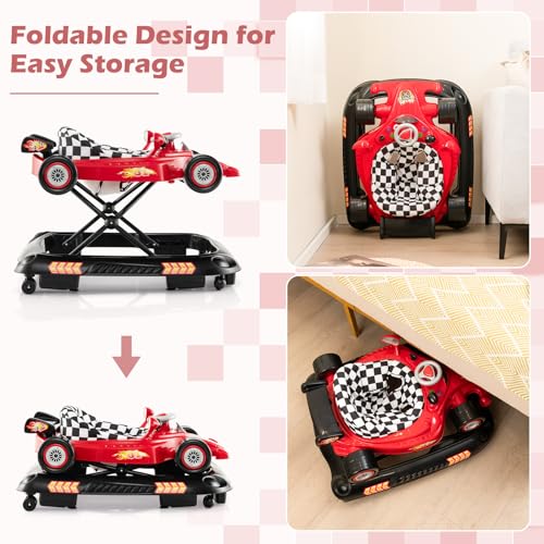 BABY JOY 4-in-1 Baby Walker, Foldable Activity Walker with Adjustable Height, Music & Lights, Anti-Rollover, Toddler Push Walker, Baby Walker with Wheels for Boys Girls 6-14 Months (Red)
