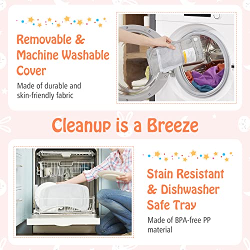 ❤️Cleanup is a Breeze: The seat cover made of durable and skin-friendly fabric is also removable and machine washable. Moreover, the tray is made of BPA-free PP material and it is also stain resistant and dishwasher safe.