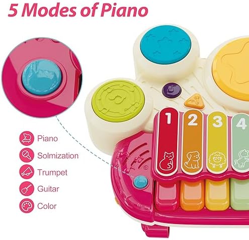 ENDLESS VARIETY: Our baby musical keyboard piano drum set has 5 piano modes, 4 xylophone modes, and 3 drum modes. This variety keeps toddlers engaged and encourages exploration. Develop your baby’s early learning and cognition of colors, numbers, animals and music