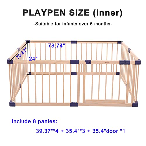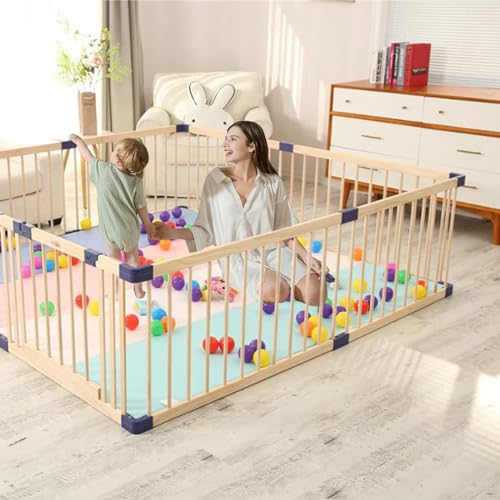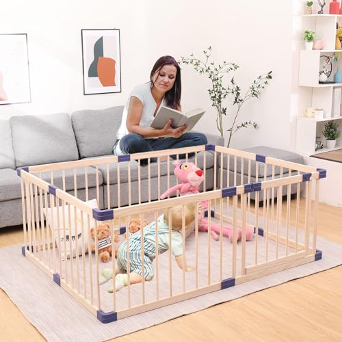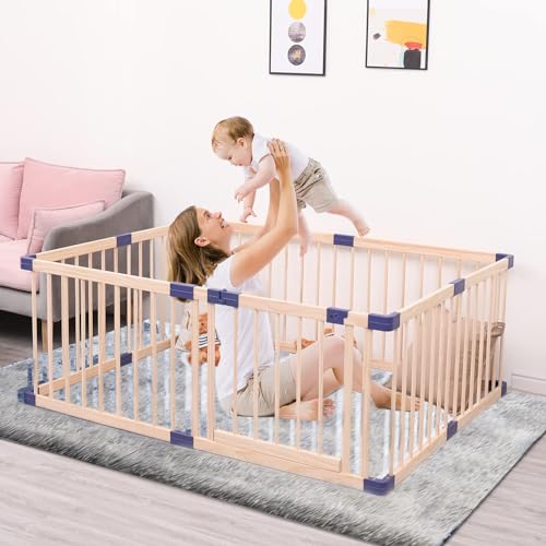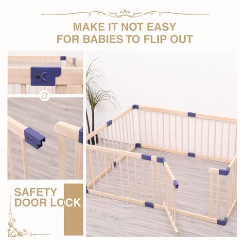Baby Playpen & Baby Gate for Toddler and Babies,Wooden Large Playard, Play Fence with Locking Gate Activity Center, Toddler Fence Play Area Indoor (71 * 79 * 24 Inch)