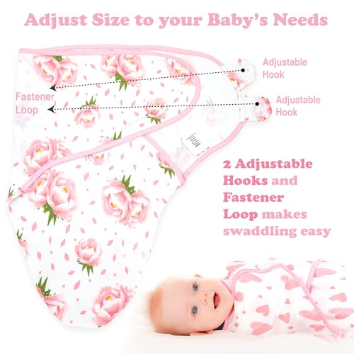 Baby Swaddle Blanket Wrap, 3-Pack Newborn Swaddle Sack, Baby Swaddles 0-3 Months, Swaddles for Newborns, Baby Sleep Sack, Baby Swaddle Blanket Wrap, Pink Floral