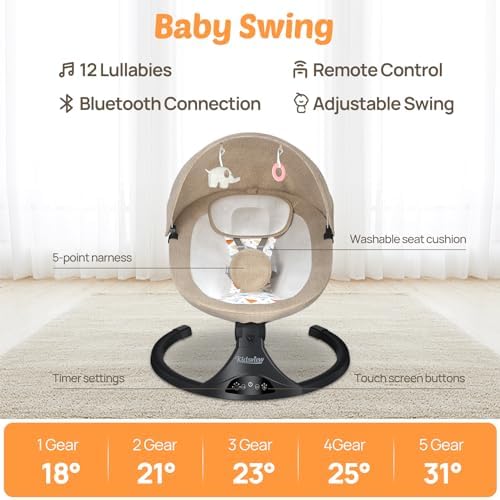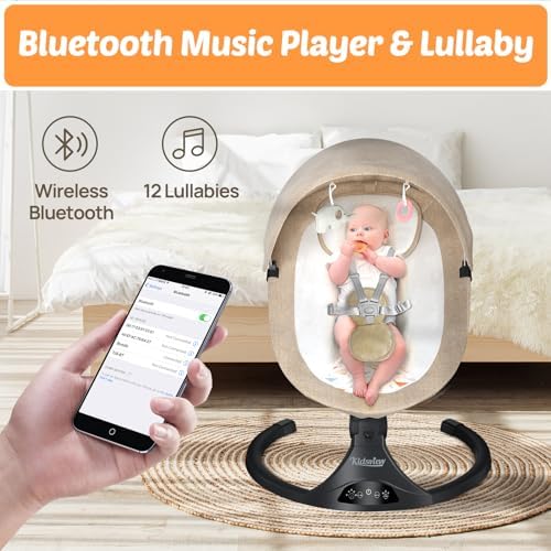 [12 Lullabies and Bluetooth Features] This baby swing for newborns features 12 gentle lullabies to soothe your baby to sleep. Operate your baby swing with ease using the touch screen or included remote control. Bluetooth connectivity allows you to control your baby swing from a distance, giving you flexibility and convenience.