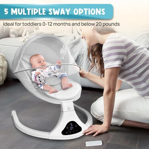 Baby Swing for Infants – Electric Motorized Baby Rocker for Newborns with 5 Speeds Remote Control, Indoor & Outdoor Use – Perfect for 0-9 Months,Bluetooth Music, 12 Preset Lullabies