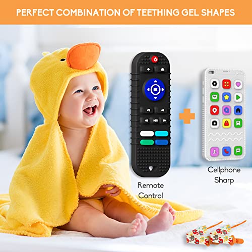 Baby Teething Toys, Silicone Baby Toys Teether Chew Toys for Babies, TV Remote Control Cellphone Shape with Push Sensory Bubble, Infant Teether Early Educational Toy for Babies 3-12 Months – 2 Pack