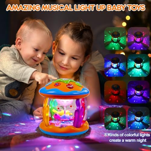 Baby Toys 6 to 12 Months Ocean Roating Projector Baby Musical Light Up Toys Tummy Time for Infant 12-18 Months Baby Crawling Toys for 1 Year Old Boys Girls Birthday Xmas Gift Toddlers Toys Age 1-2