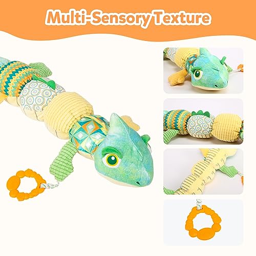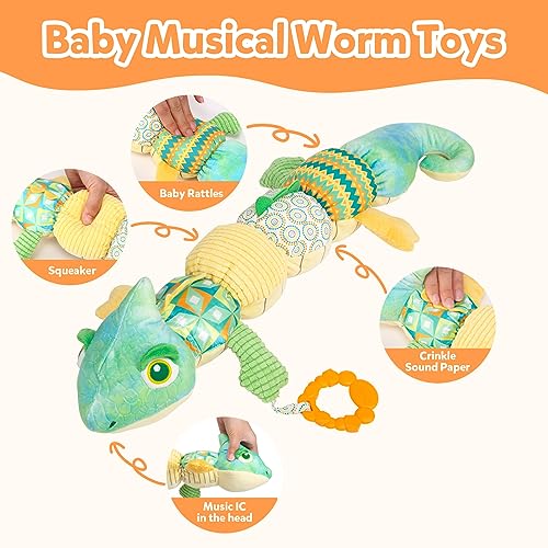 Baby Toys Musical Chameleon, Infant Toys Stuffed Animal Toys, Multi-Texture Plush Toys with Rattles and Ruler Designs for 0 3 6 12 Months Old Girls Boys First Gift